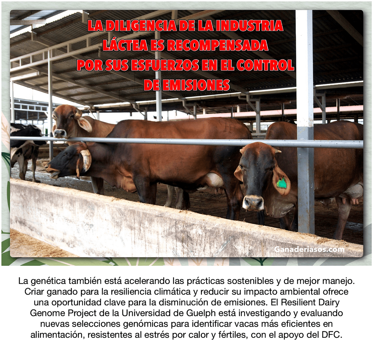 ARTICULO COMPLETO…….LA DILIGENCIA DE LA INDUSTRIA LACTEA ES RECOMPENSADA POR SUS ESFUERZOS EN EL CONTROL DE EMISIONES