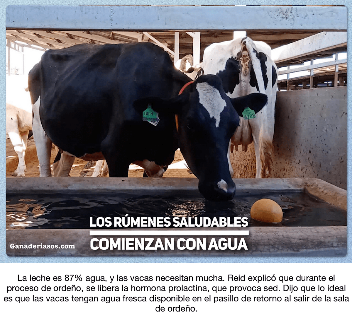 Desde entonces, Reid ha visitado y asesorado lecherías de todos los tamaños y alrededor del mundo. Dijo que no importa si una lechería ordeña 100 vacas o 10,000, el agua hace la diferencia de cualquier manera.